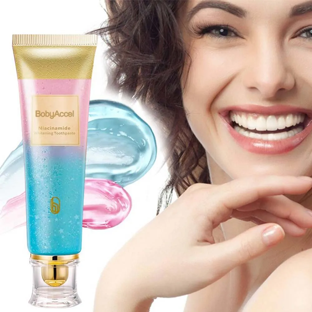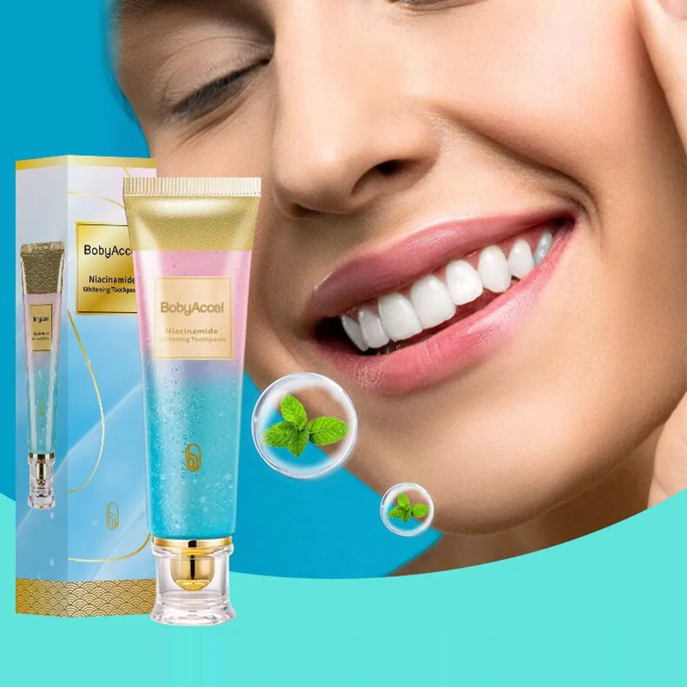 Dites bonjour à un sourire éclatant avec notre dentifrice 🦷! Formule douce et naturelle 🌱 de 100g, enrichie en Niacinamide pour éliminer les taches de café/thé ☕ et garantir des dents plus blanches 💖.