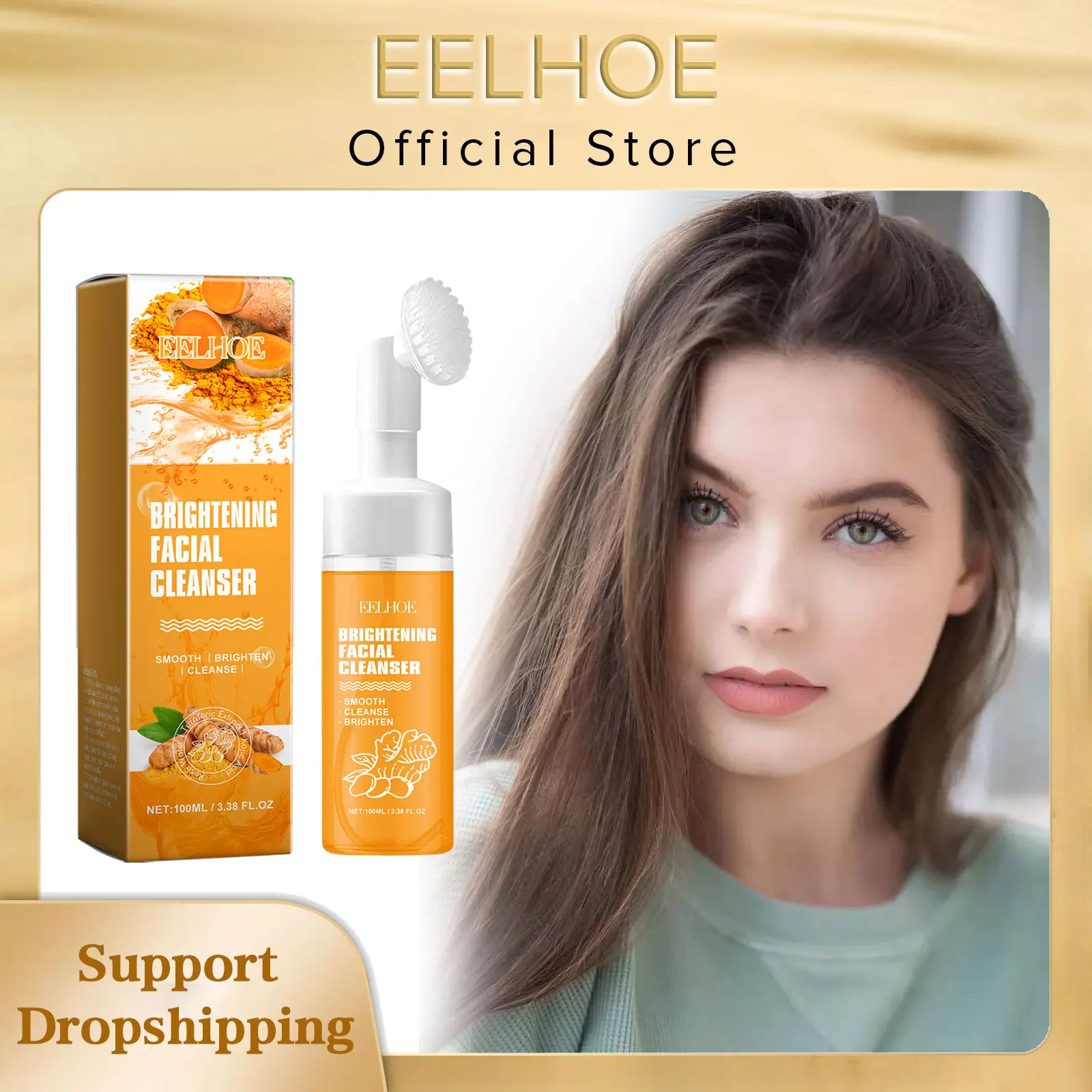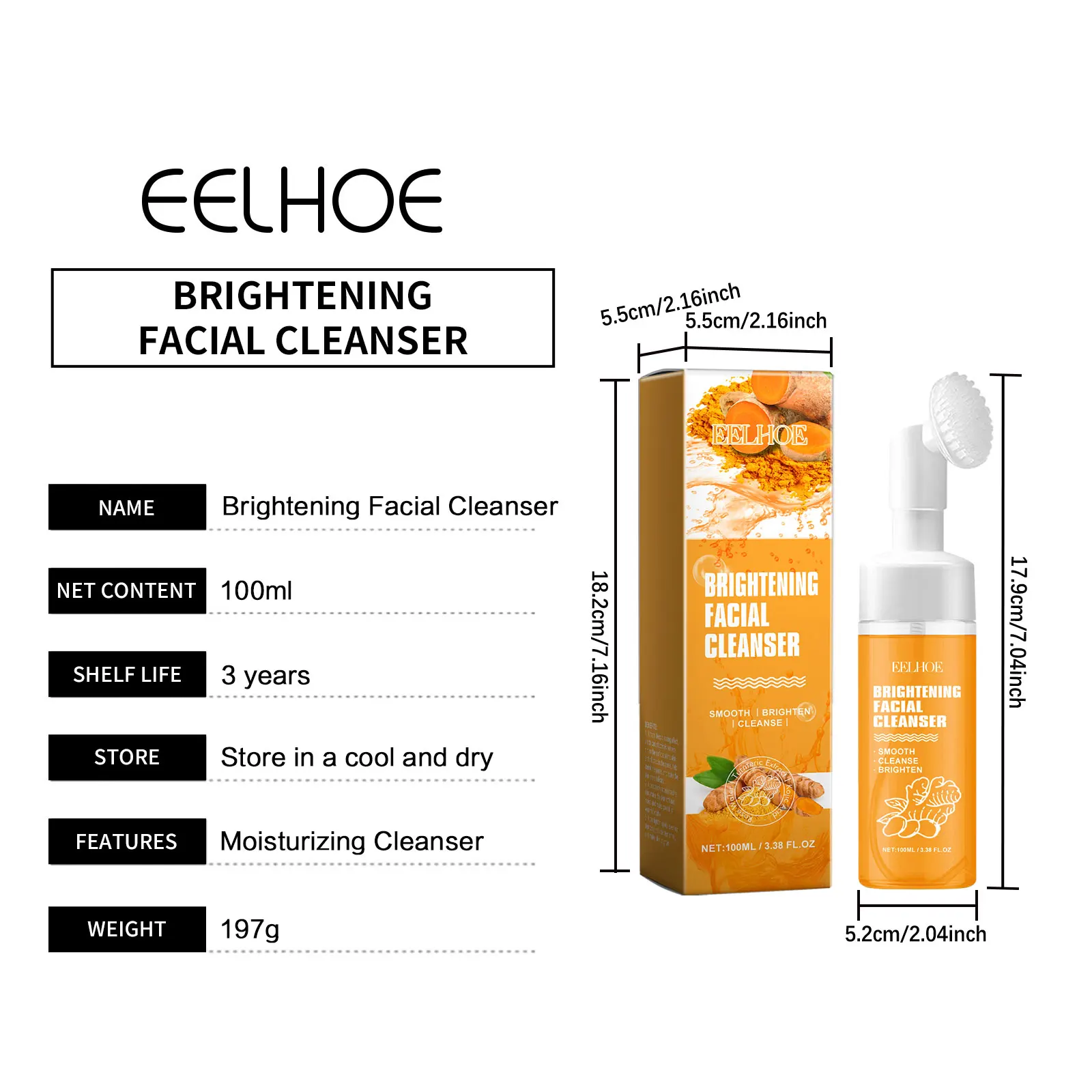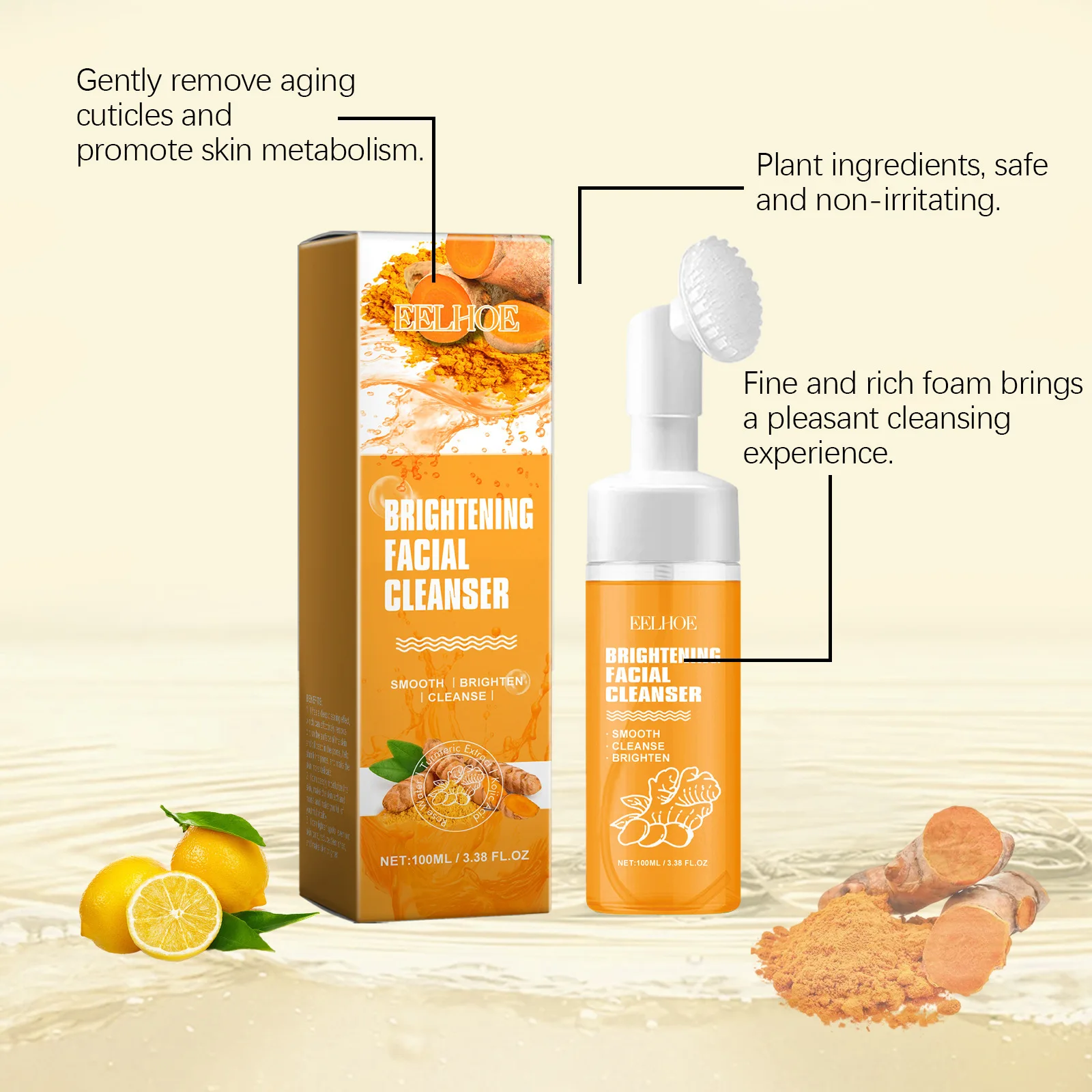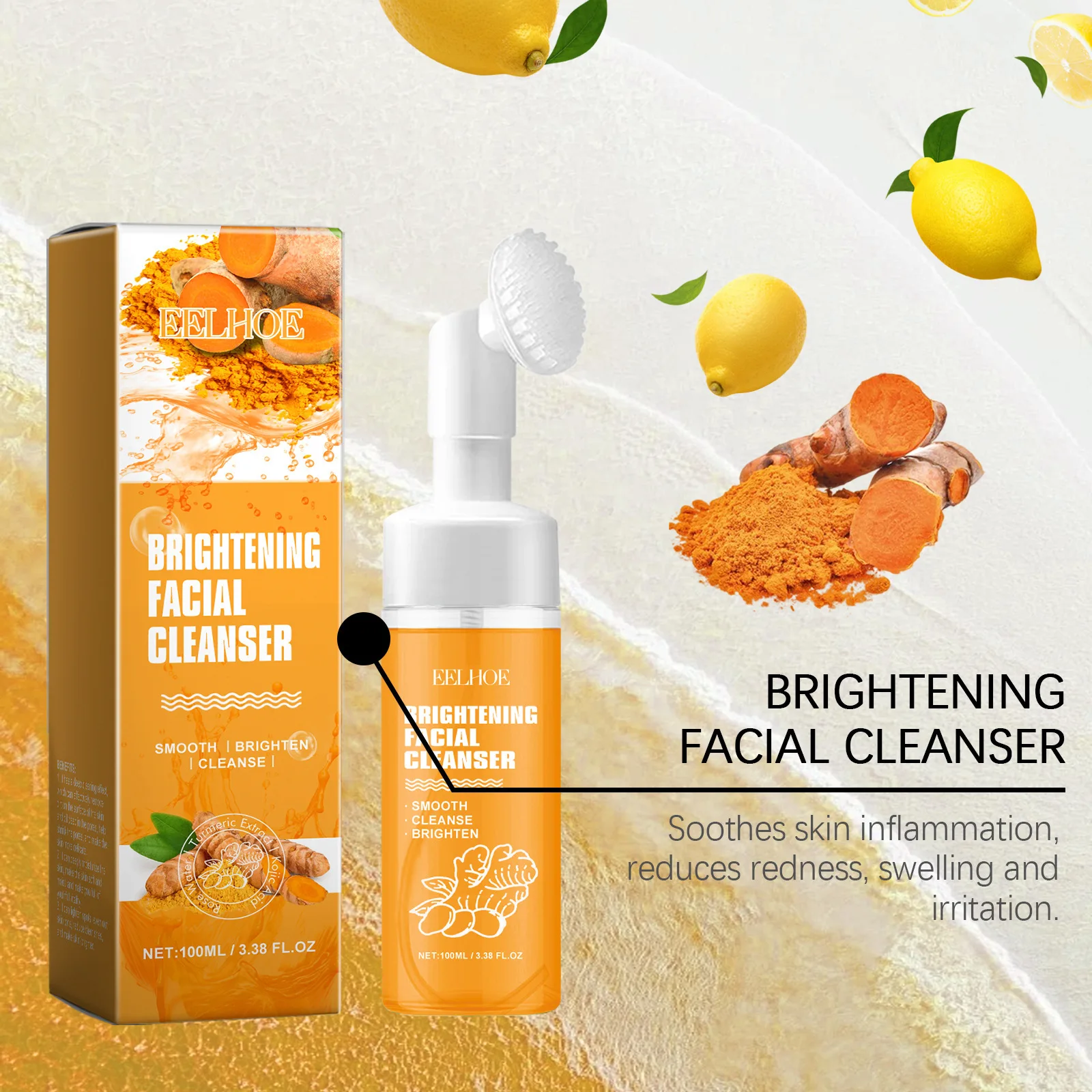 EELHOE Nettoyant au curcuma Contrôle du sébum du visage Élimine les boutons et les points noirs Outil de nettoyage éclaircissant pour la peau Brosse Nettoyant visage 100 ml