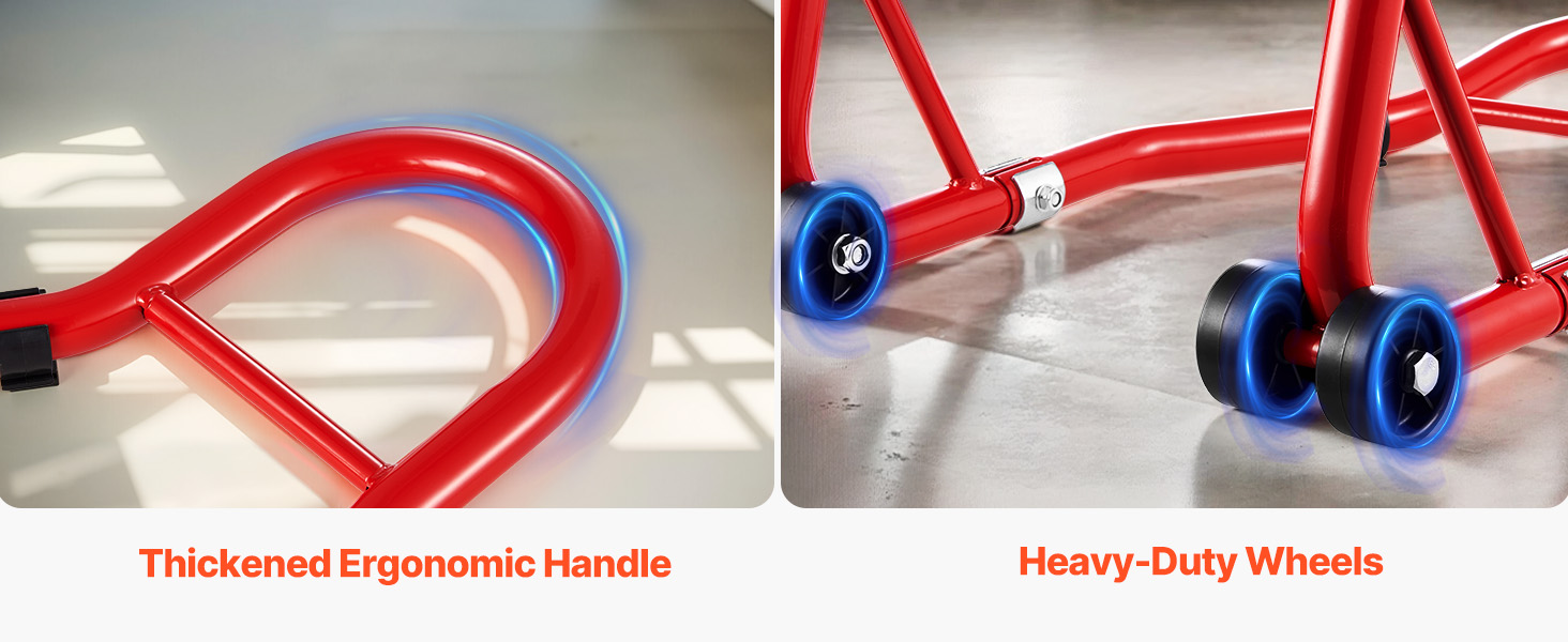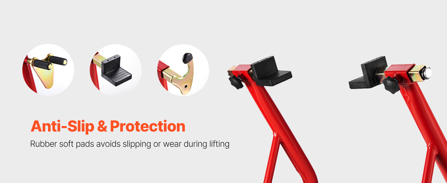 Anti-Slip Protection: The fork heads of this motorcycle frame stand are equipped with anti-slip rubber feet, which avoid damage to the motorcycle while increasing friction. This reduces the risk of slippage during lifting, ensuring a more stable lift